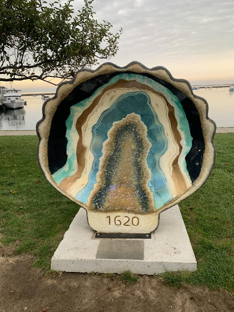 In Plymouth, MA we observed these scalloped shell sculptures. Apparently there were 29. I wish I would have had time to go find them all. That would've been fun. They were painted by local artists. I think they may feature a different theme each year and when we were there, this was chosen because of its symbolism for pilgrimage. Apparently artwork of the shell can ofen be found on local headstones as far back as 1681. Several of them had blue on them so I thought I'd share. I just found a puzzle with these, and it was on sale but once I hit the cart, the shipping was almost $20 so I decided not to get it. It would've been a fun puzzle.